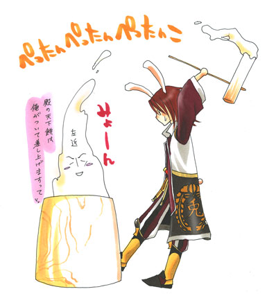 取り合えず、餅をつくウサギさん(三成)描いてみました。
